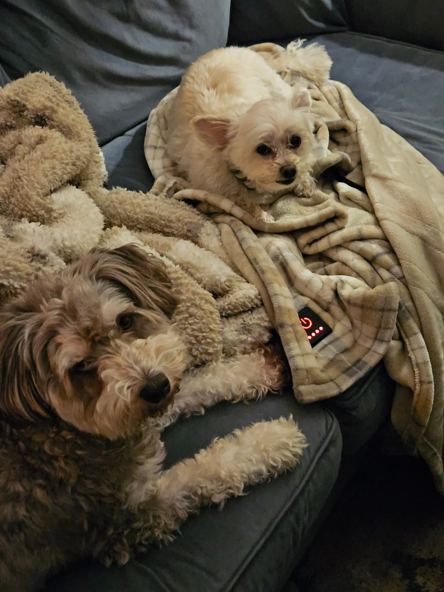 Bonus pic of Max and Teddy after they figured out how to turn on the heated throw